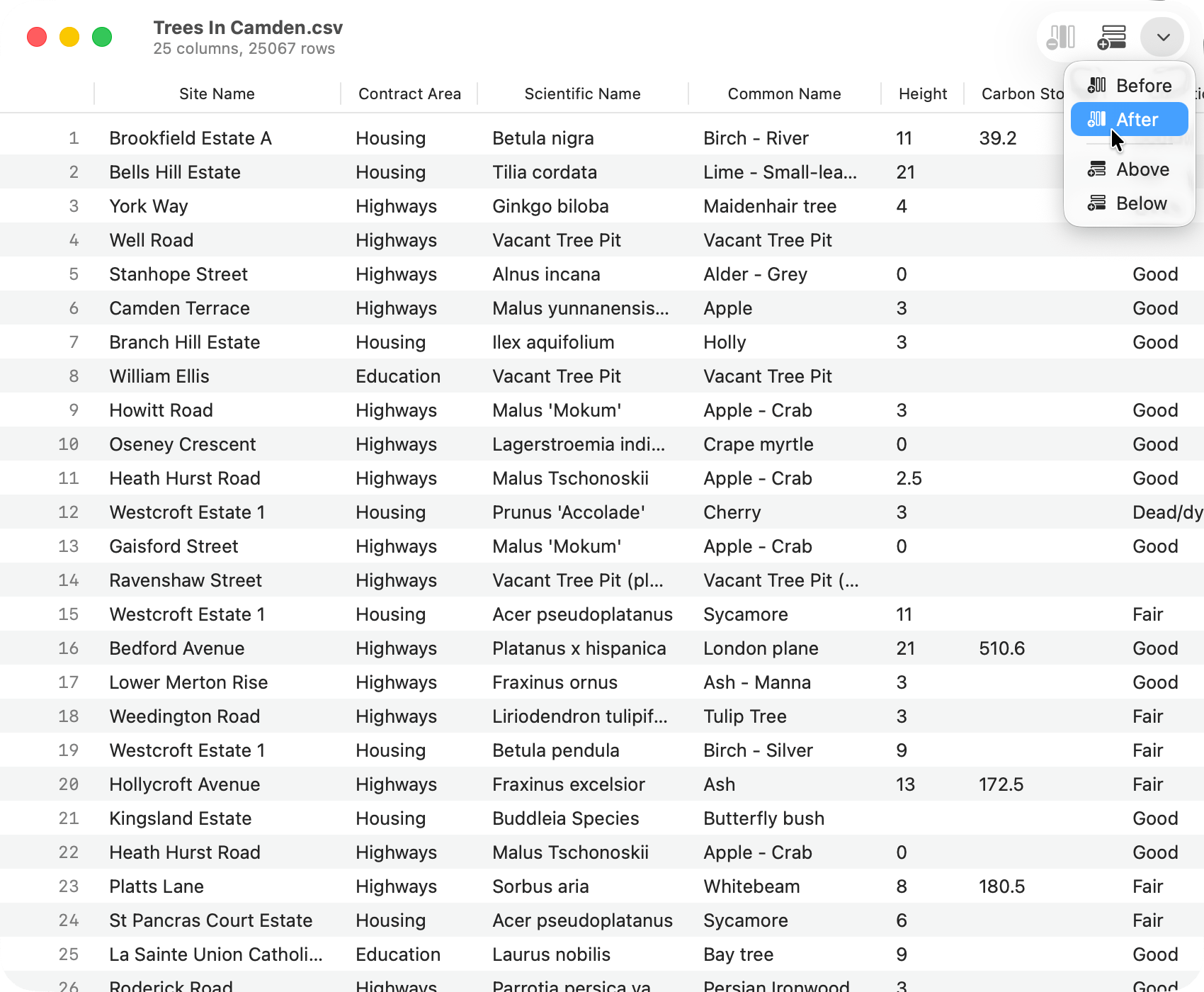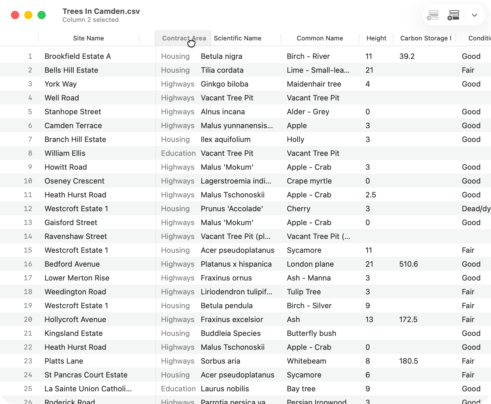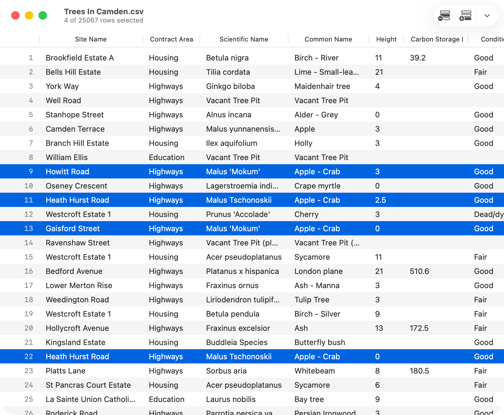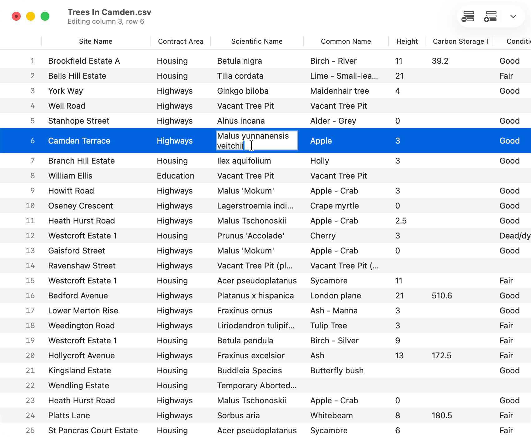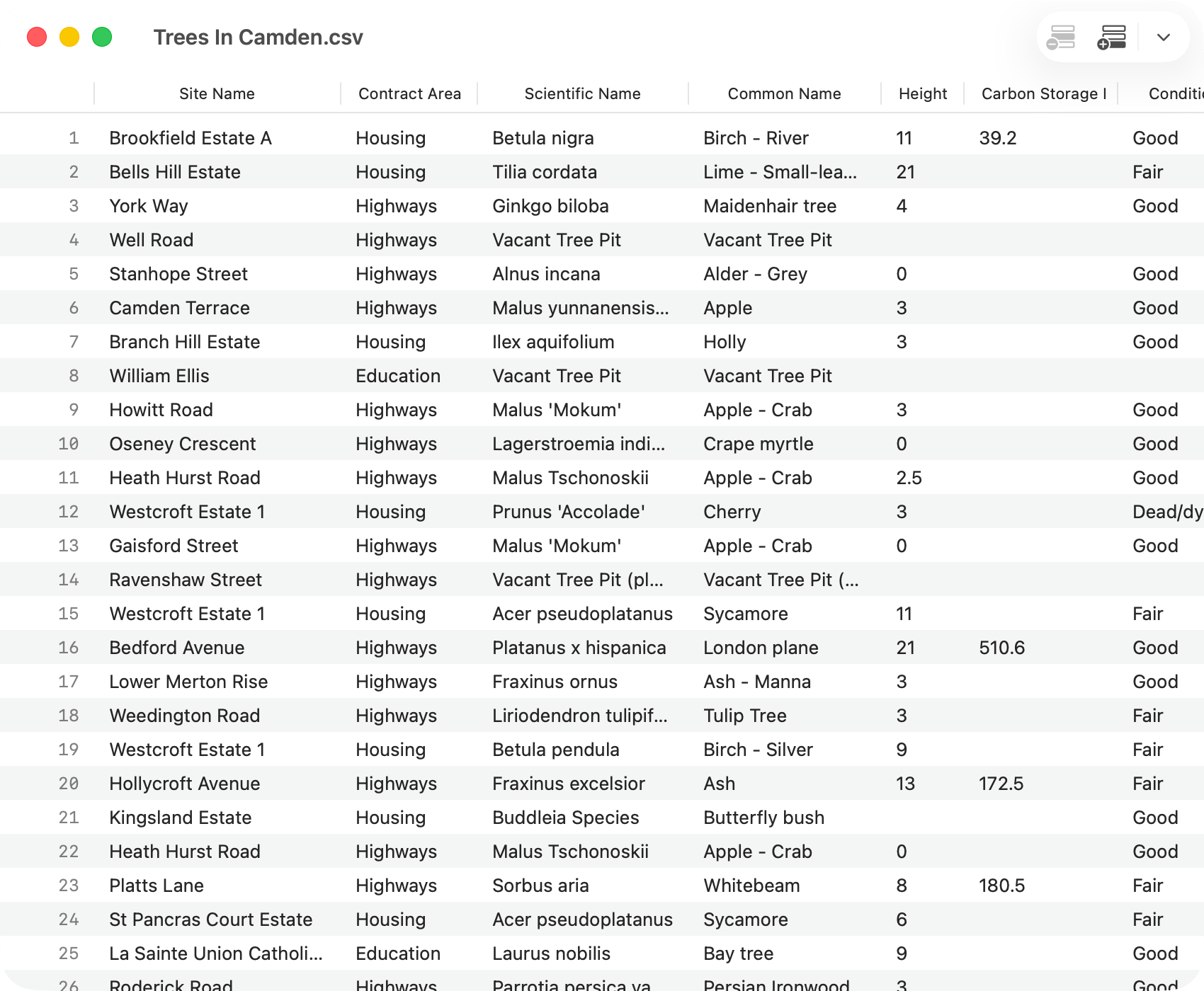 I’ve always thought of Delimited as “the TextEdit version to Numbers”. Lightweight, straightforward and (reasonably) fast, specifically made for working with CSV files. Delimited is native, built in Swift, and designed to handle everything from small to large tables - it has comfortably handled 2 million rows on my M2 MacBook Pro. While it’s not focused on excelling in any particular benchmark, it strikes a balance between performance, design and user experience.